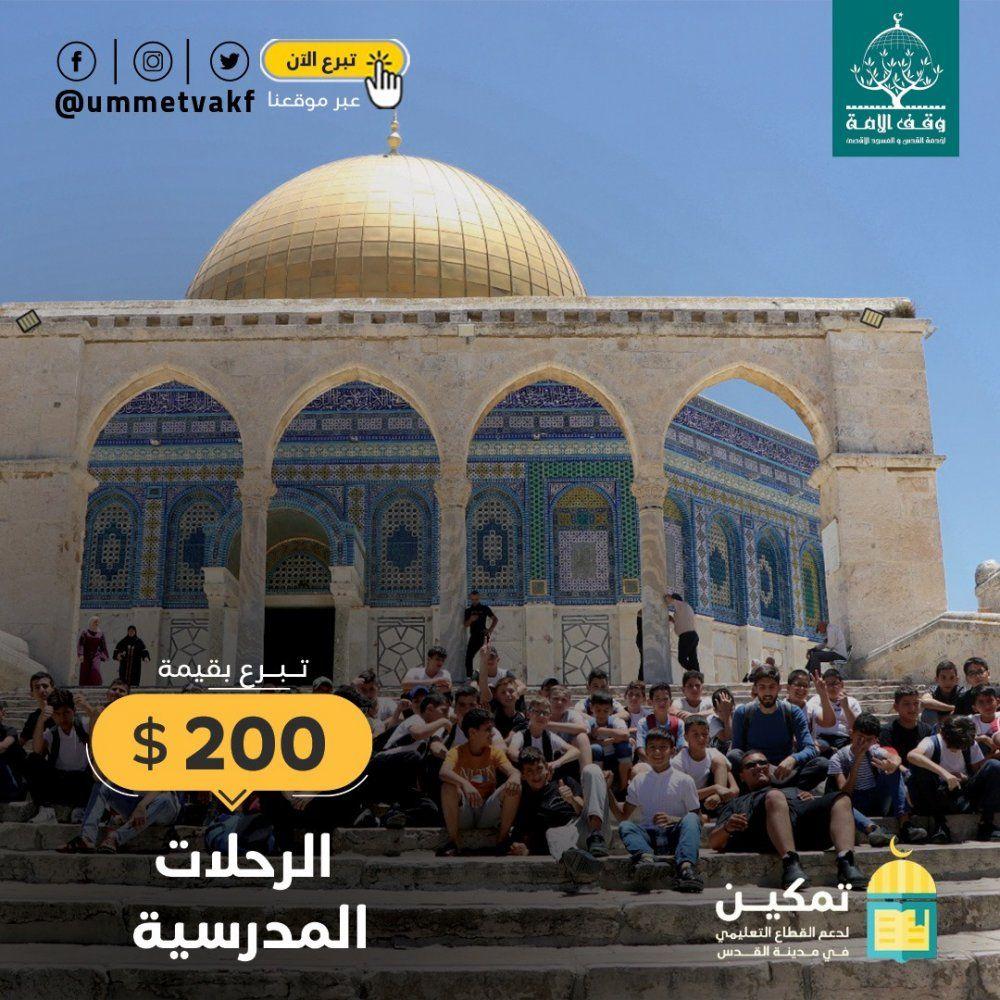 من حقوق الأطفال علينا إمدادهم بالقدر اللازم من اللعب، والترويح عليهم أثناء الدراسة وتحبيبهم بها. حيث يقوم المشروع على تسيير رحلات دورية للطلاب من مدارس مدينة القدس في حصص النشاط ورحلات خارج أوقات الدوام إلى المسجد الأقصى بالاتفاق والتعاقد مع المدارس خلال العام الدراسي، حيث سيتم تسير 120 رحلة في العام كل رحلة بها 50 طالب وطالبة. وكل ذلك من أجل ربط الطلاب بالمسجد الاقصى وجعله جزء لا يتجزء من حياتهم اليومية.